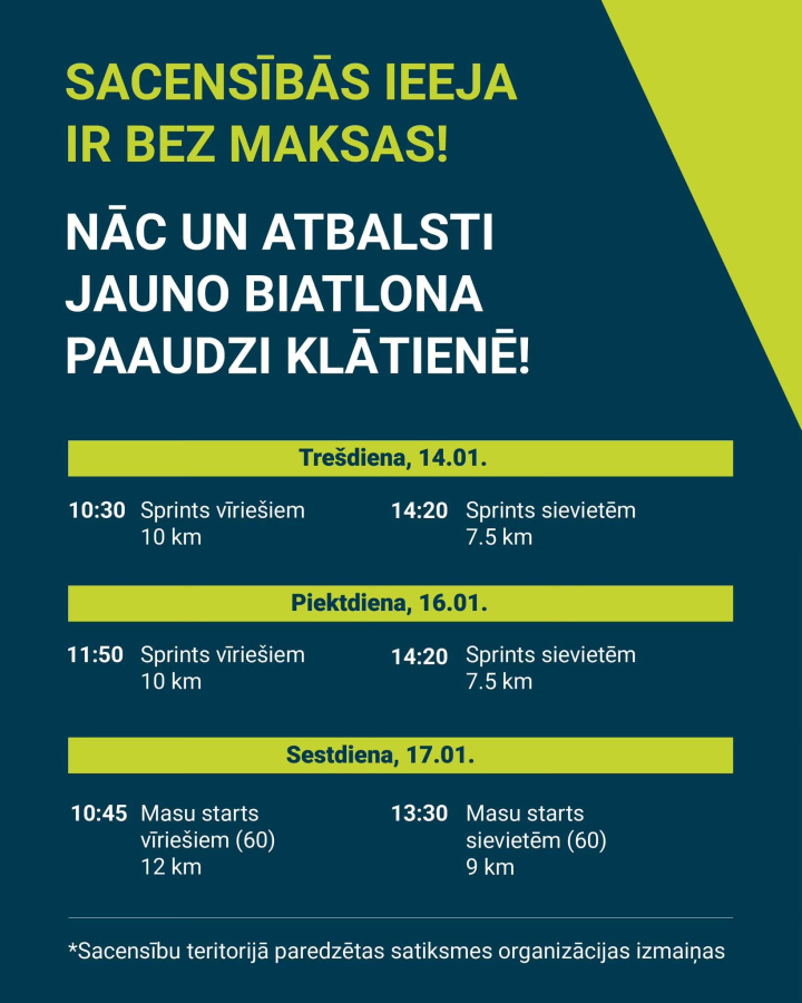 Sacensību norises laikā paredzētas arī satiksmes organizācijas izmaiņas Smeceres sila apkārtnē. Plašāka informācija un sacensību programma pieejama: www.biathlonmadona.com
