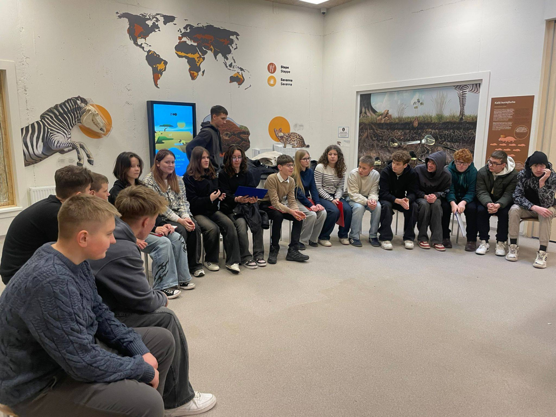Otrajā daļā mācību klasē skolēni piedalījās izglītojošās spēlēs un grupu darbā – modelēja barības ķēdes un tīklus, veidoja trofisko piramīdu un diskutēja par ekosistēmas līdzsvara traucējumiem. Noslēgumā skolēni reflektēja par jauniegūtajām atziņām un pārrunāja, kā ikviens var palīdzēt saglabāt dabu, rūpēties par dzīvniekiem un veicināt ilgtspējīgus ieradumus.