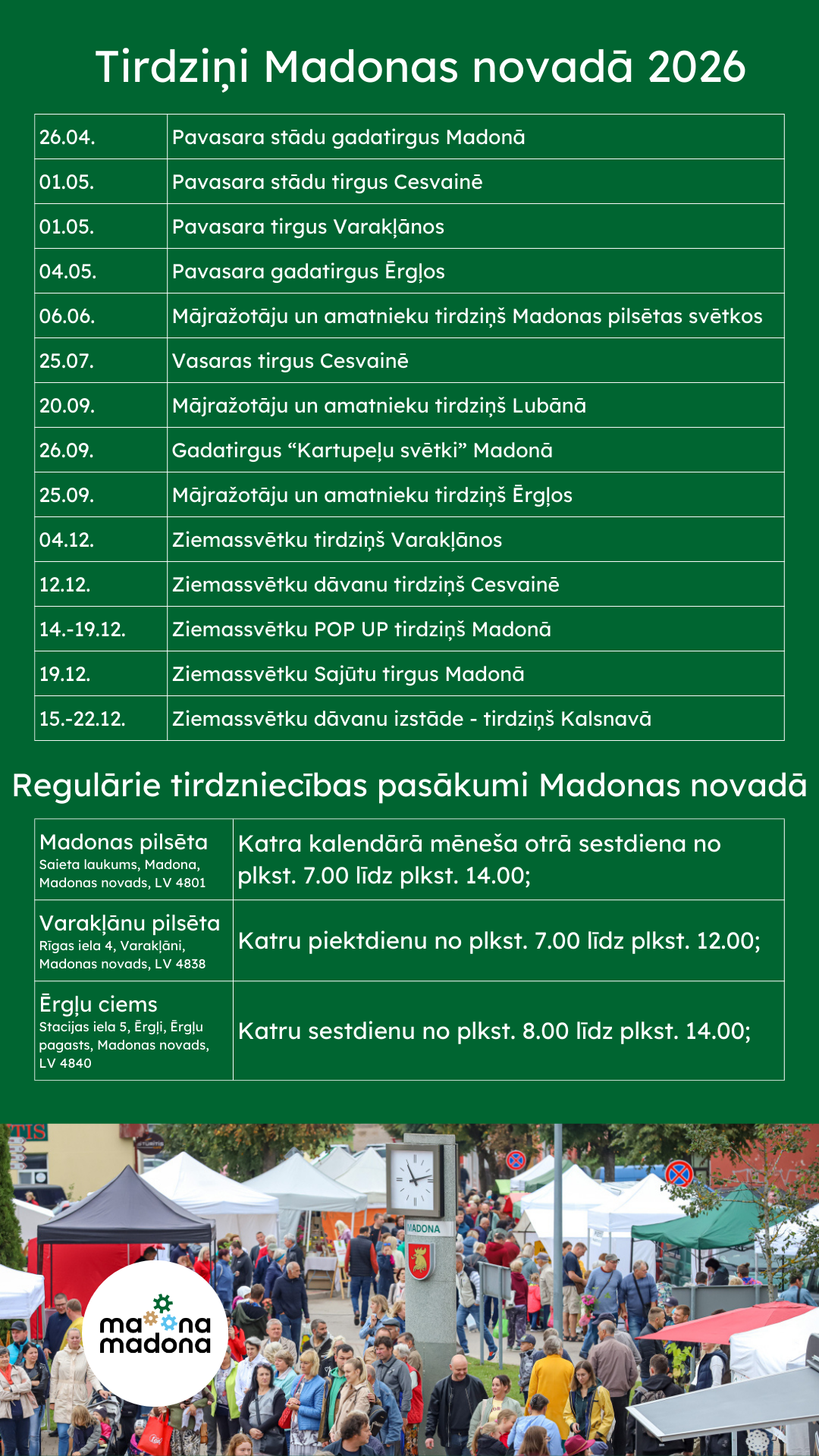 tirgus organizatores Nadeždas Seļmas, zvanot +371 26346077.