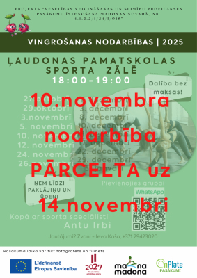 [PAPILDINĀTS] 10. novembra nodarbība pārcelta uz 14. novembri!